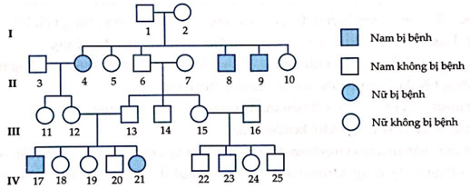 Người 4, 8, 9, 17, 21 có kiểu gene là aa