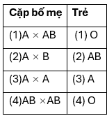 1 – trội không hoàn toàn, 2 - IO, 3 – không.