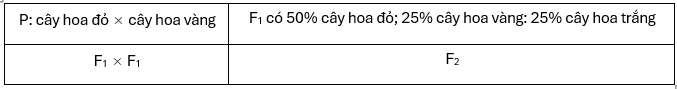 25% cây hoa đỏ: 50% cây hoa hồng: 25% cây hoa trắng.