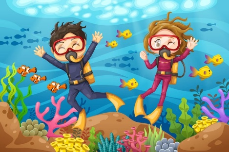 Dịch nghĩa: Cô ấy không lướt sóng. Cô ấy đang lặn với ống thở.