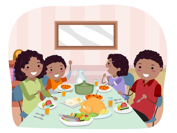They eating dinner.