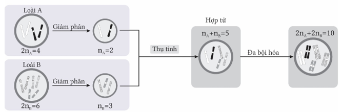 tế bào sinh dưỡng mang bộ NST lưỡng bội của hai loài khác nhau.