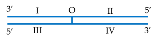 (1)-đầu 5’; (2)- đầu 3’;(3)- đầu 3’; (4)-đầu 5’; 5- chiều tháo xoắn.