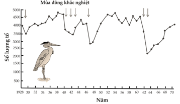 Sự biến động số lượng cá thể diệc xám ở Anh có tính chu kì.