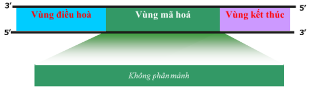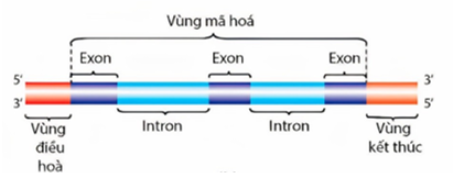 Phần lớn các gene của sinh vật nhân sơ có vùng mã hoá không liên tục, xen kẽ các đoạn mã hoá amino acid (exon) là các đoạn không mã hoá amino acid (intron).
