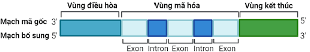 Mỗi gene mã hoá protein điển hình gồm 3 vùng trình tự nucleotide: vùng điều hoà, vùng mã hoá và vùng kết thúc.