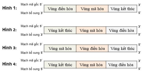 1 - đầu 3’; 2 - đầu 5’;3 - đầu 5’; 4 - đầu 3’