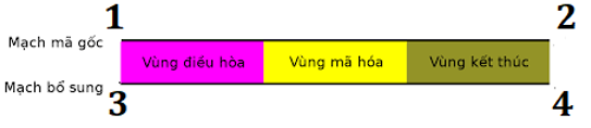 1 - đầu 5’; 2 - đầu 3’;3 - đầu 5’; 4 - đầu 3’