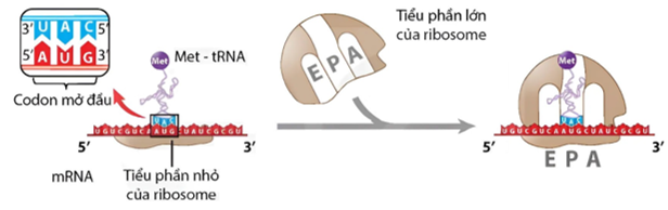 Ribosome dịch chuyển tới bộ ba AUG.