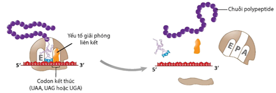 Ribosome rời khỏi mRNA và trở lại dạng tự do với hai tiểu phần lớn và bé.