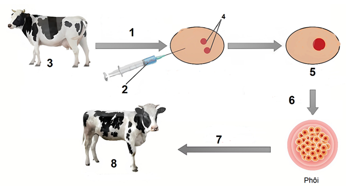 b. [3] là bò cho trứng, [5] là hợp tử mang gene cần chuyển.