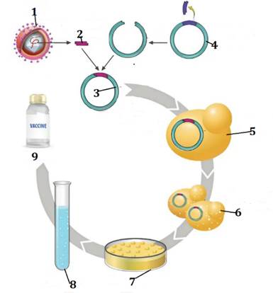 DNA tái tổ hợp bao gồm plasmide của nấm và đoạn DNA mang yếu tố đông máu VIII. |