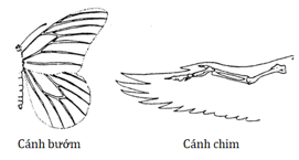 Cánh bướm và cánh chim có hình dạng tương tự nhau, cùng thực hiện một chức năng.
