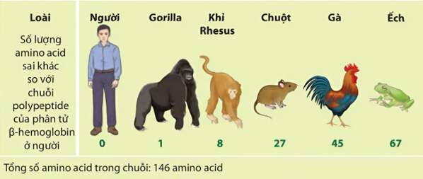 Những loài có số amino acid sai khác trong chuỗi polipeptide càng nhiều thì càng có quan hệ họ hàng xa nhau.
