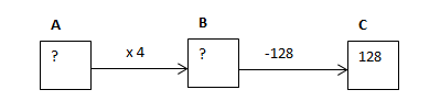 Số ghi trong hình vuông B là: 128 + 128 = 256
