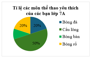 Do \(10\% < 20\% < 20\% < 50\% \) nên môn bóng bàn có ít học sinh yêu thích nhất và chiếm \(10\% \).