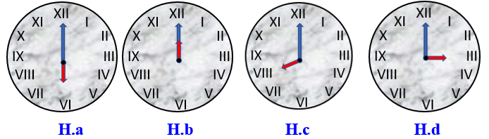 • Đồng hồ H.b chỉ \(12\) giờ;