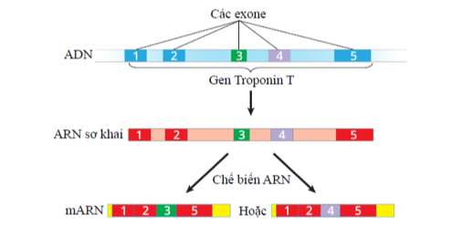 Các kiểu tổ hợp exon khác nhau ở gene Troponin T (Nguồn: Campbell, Reece)