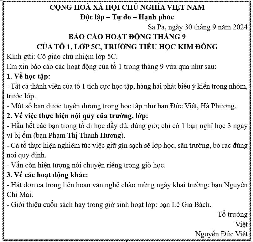 Hướng dẫn viết Tập làm văn lớp 5 Dạng 12: Viết báo cáo công việc có đáp án