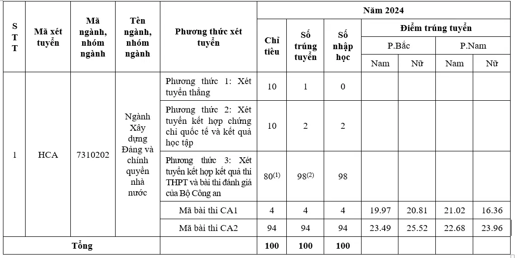 Mã ngành, mã xét tuyển Học viện Chính trị Công an Nhân dân 2025